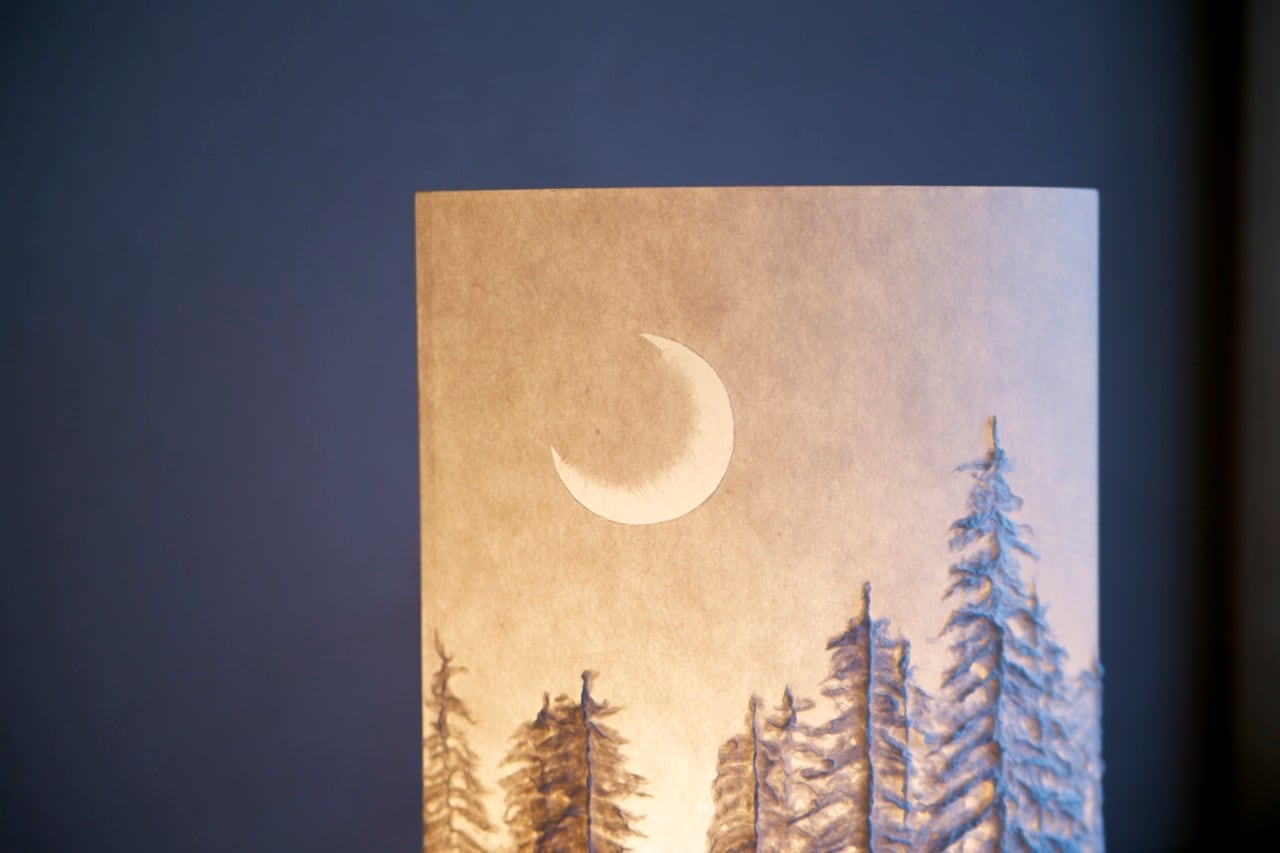 こちらは両面のデザインを裏表返せる両面タイプで、1つの灯りで2つの世界が楽しめます。